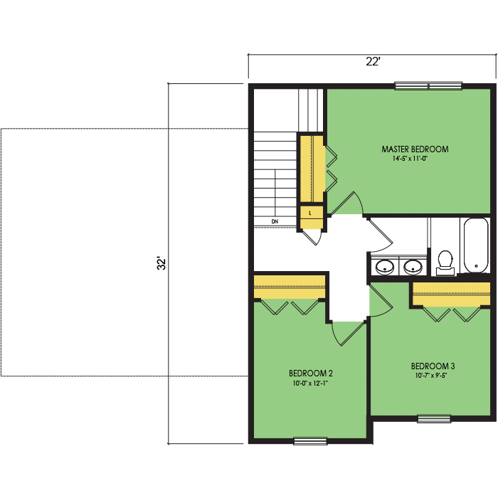 A part of our dream series, the tamarack floor plan features 3 bedrooms and 1.5 bathrooms with a foot print of 44x30 feet and 1342 total square feet of living space.