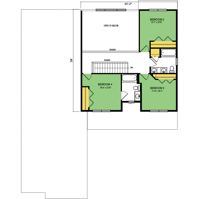 A part of our Designer Series, the Saw Grass floor plan features 4 bedrooms and 3.5 bathrooms with a foot print of 52x66 feet and 2530 total square feet of living space. Floor Plan #DN327