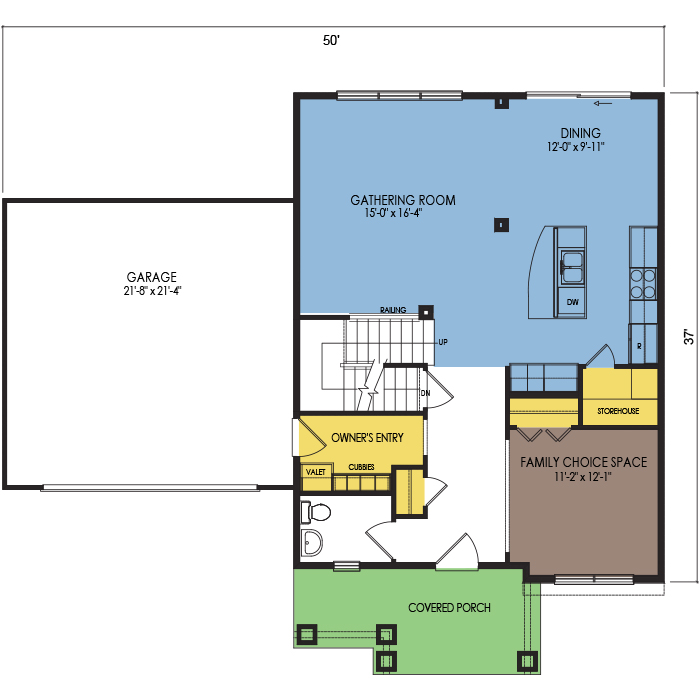 A part of our dream series, the tamarack floor plan features 3 bedrooms and 1.5 bathrooms with a foot print of 44x30 feet and 1342 total square feet of living space.