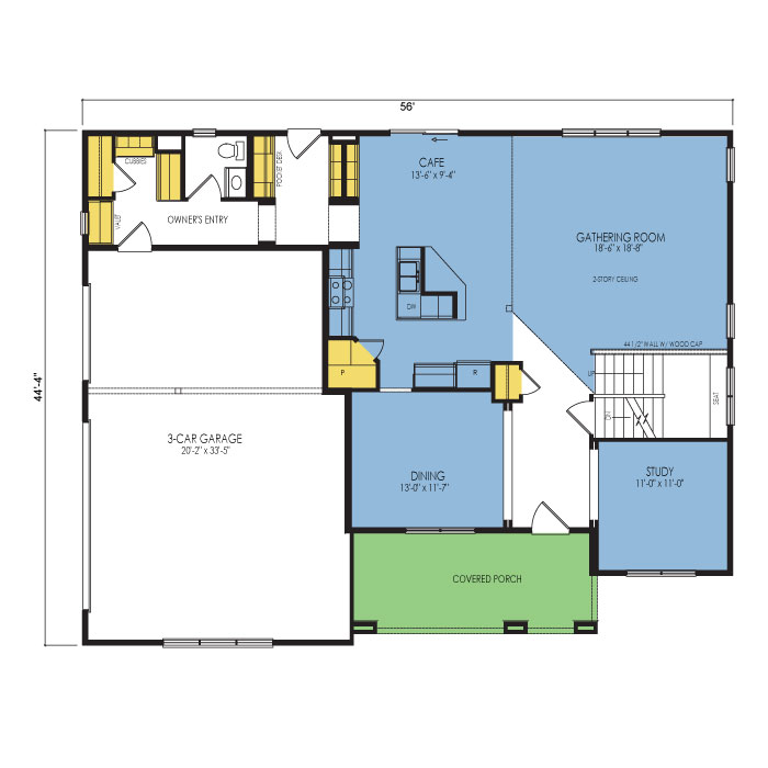A part of our Designer Series, the Stony Ford floor plan features 3 bedrooms and 2.5 bathrooms with a foot print of 56x44 feet and 2983 total square feet of living space. Floor Plan #DT273